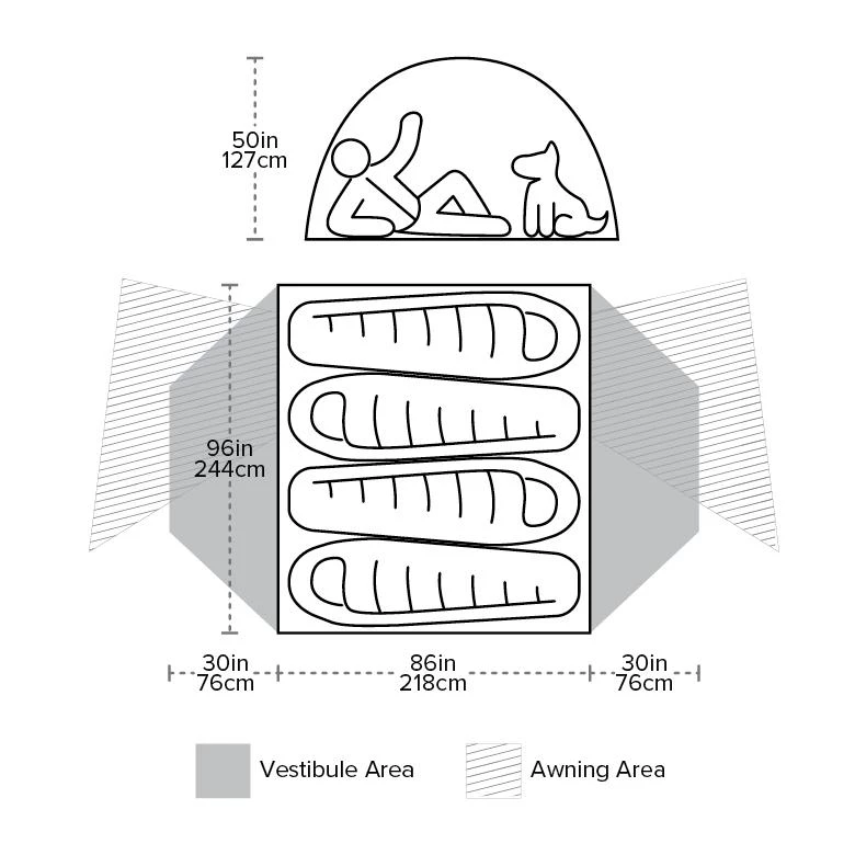 DAC poles with 4-way, high-volume hub design provide strength, stability, and generous livable space