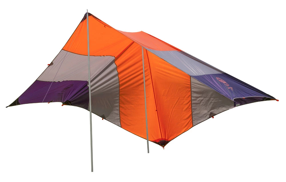 Versatile shape with two adjustable poles (included) allows for a multitude of pitch configurations
