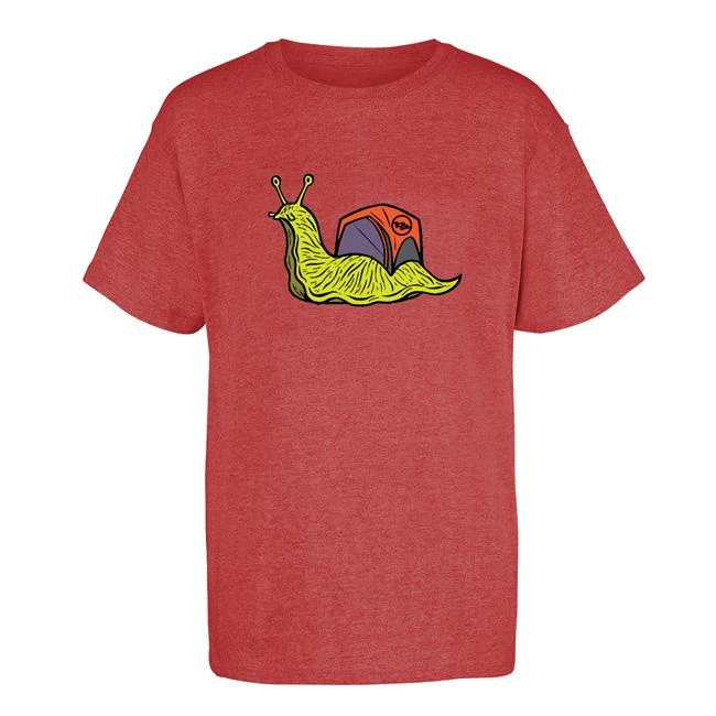 Get the whole family outside in comfort and timeless style with this ring-spun cotton crewneck T-shirt! Featuring Shelly the snail, who’s at home wherever she goes thanks to her Big Agnes tent!