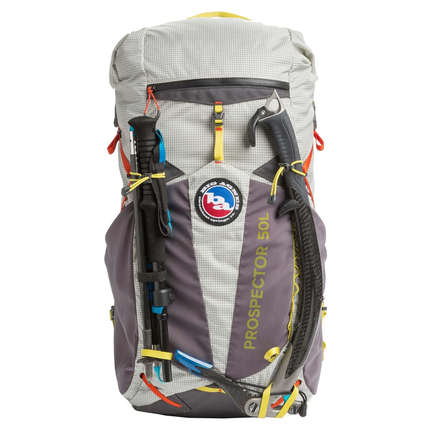 Stash trekking poles on pack exterior using webbing and bungee cord loops. Also features discreet ice axe loop, daisy chain loops on pack exterior for extras, and top grab handle for easy movabilityÂ