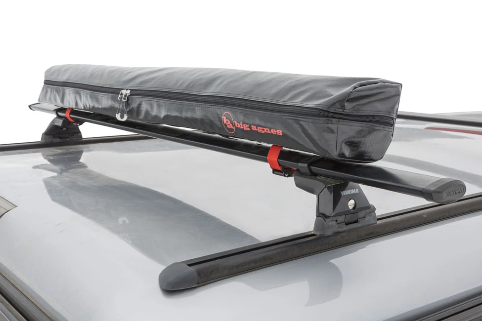 Carry bag attaches to roof racks for set up and provides storage when not in use