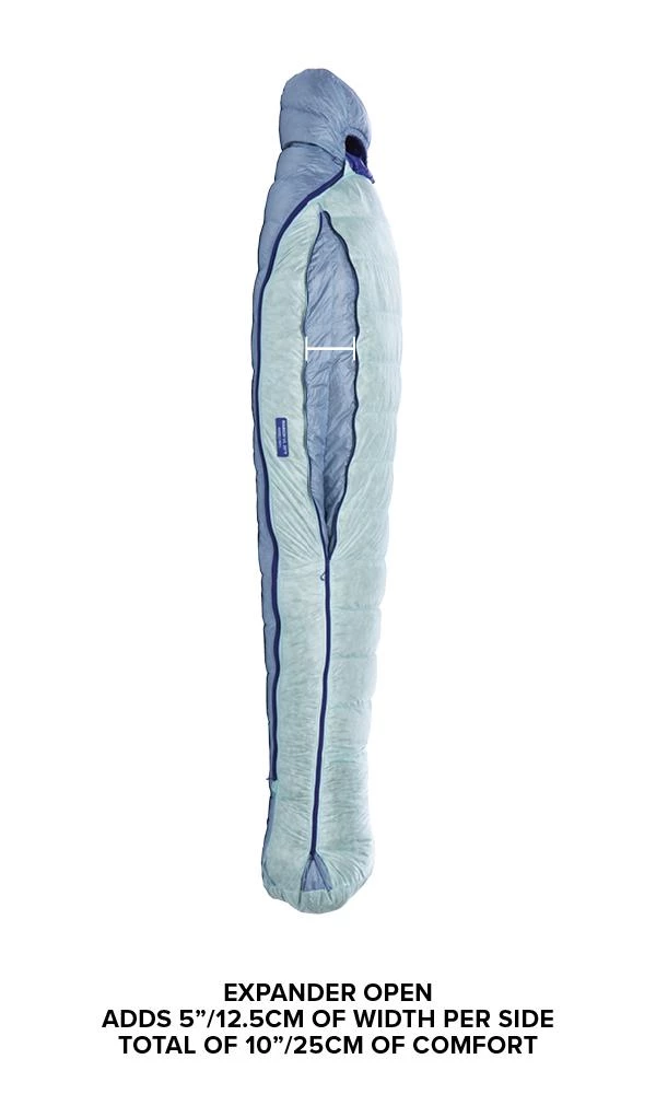 Ultralight down mummy bags that feature expandable panels for customizable fit – patent pending